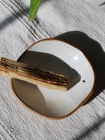 A simple, sculptural incense bowl designed to bring calm and intention to your daily rituals. Handcrafted from warm stoneware clay, it features a raw, unglazed exterior for natural texture and a smooth white glazed interior that catches ash beautifully.