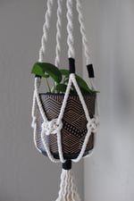 Elevate your plants with this beautiful macramé plant swing, featuring a twisted design for a unique and modern touch. Crafted from durable 8mm ivory cotton rope with 2mm black rope accents, this swing combines durability with natural elegance, making it the perfect way to display your plants.