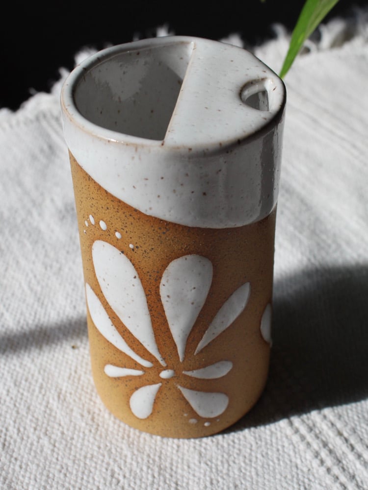 A hand built, one-of-a-kind travel tumbler for those on the go. For anyone who likes to take their bevy of choice along for the ride and who chooses to sustainably avoid disposable cups, this travel mug is for you.